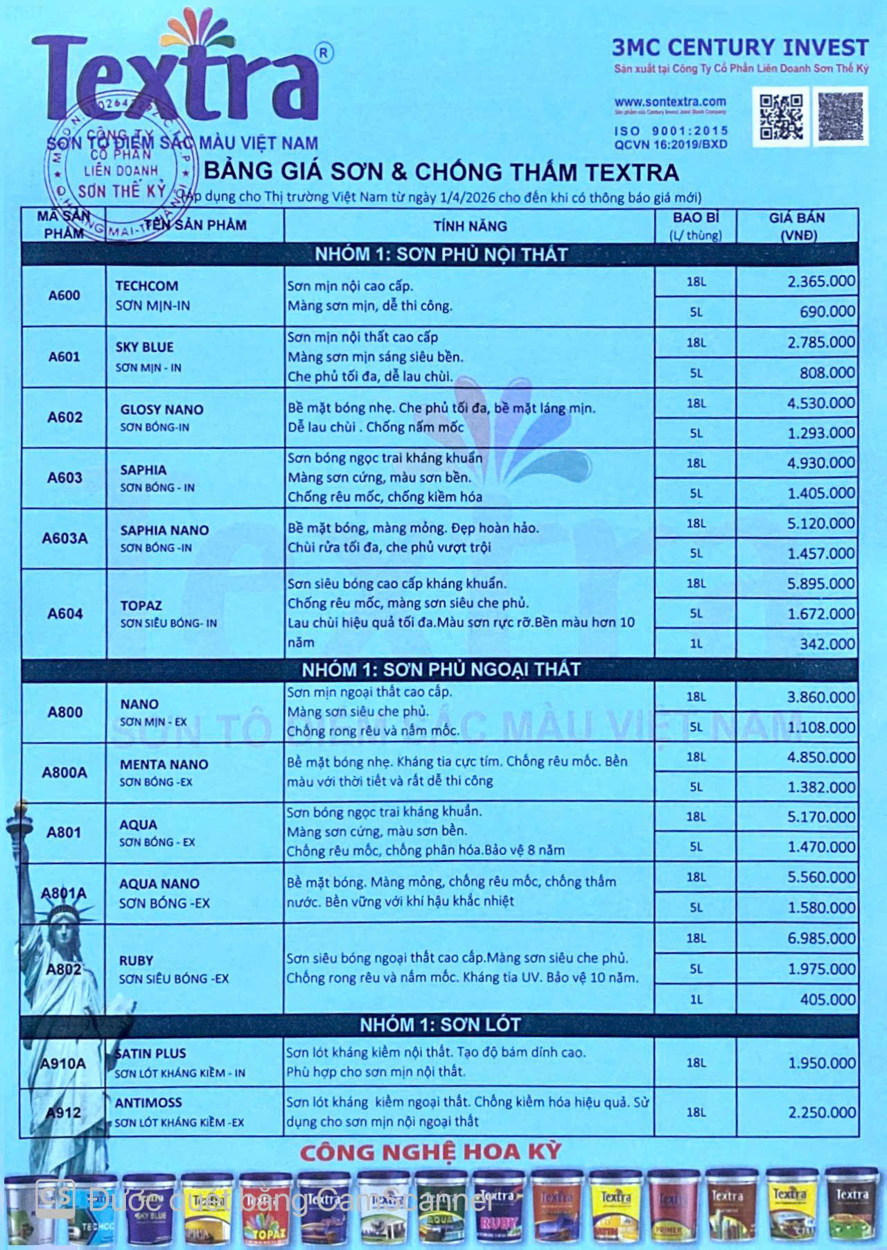 | 18L/ Thùng | 4.850.000đ | 5L/Lon | 1.328.000đ |
