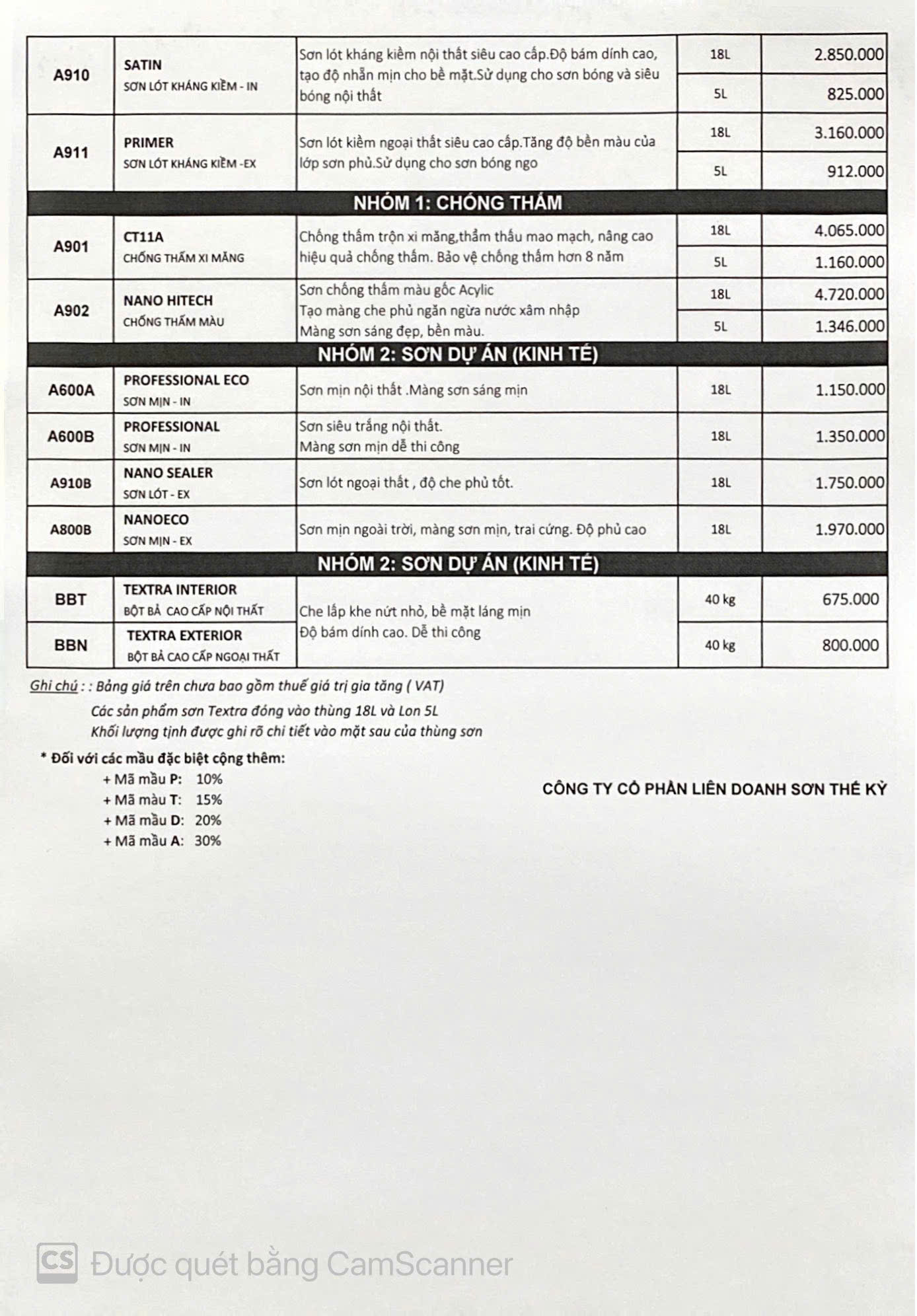 | 18L/Thùng | 2.600.000đ | 5L/Lon | 789.000đ |